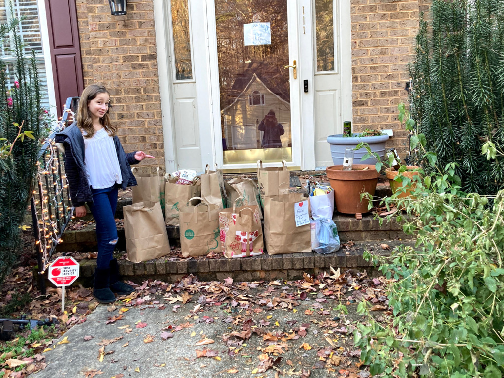 Many of the worshippers will be wearing kippot (head coverings) as a sign of respect for God, and tallitot (prayer shawls), a symbol of God’s enveloping love and commandments. Wearing a kippah is optional. Sarah will be wearing a tallit for the first time, and she chose to wear the tallit that her mom received on her Bat Mitzvah.